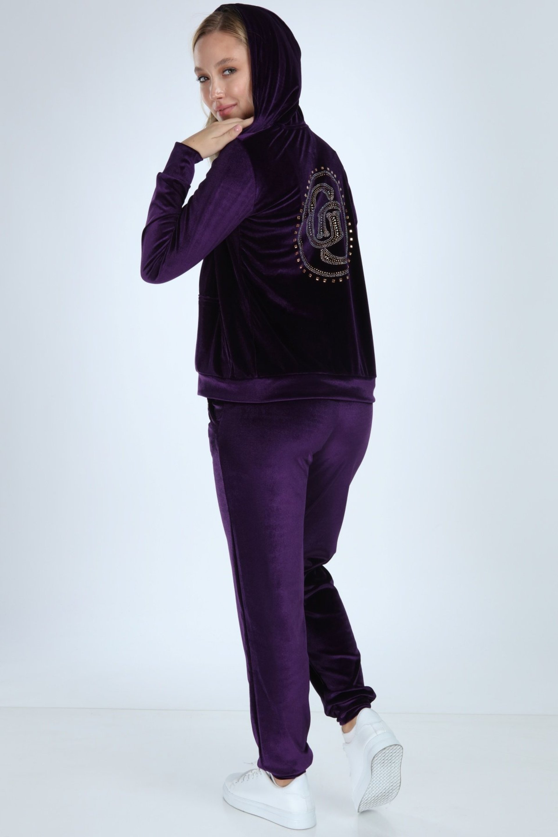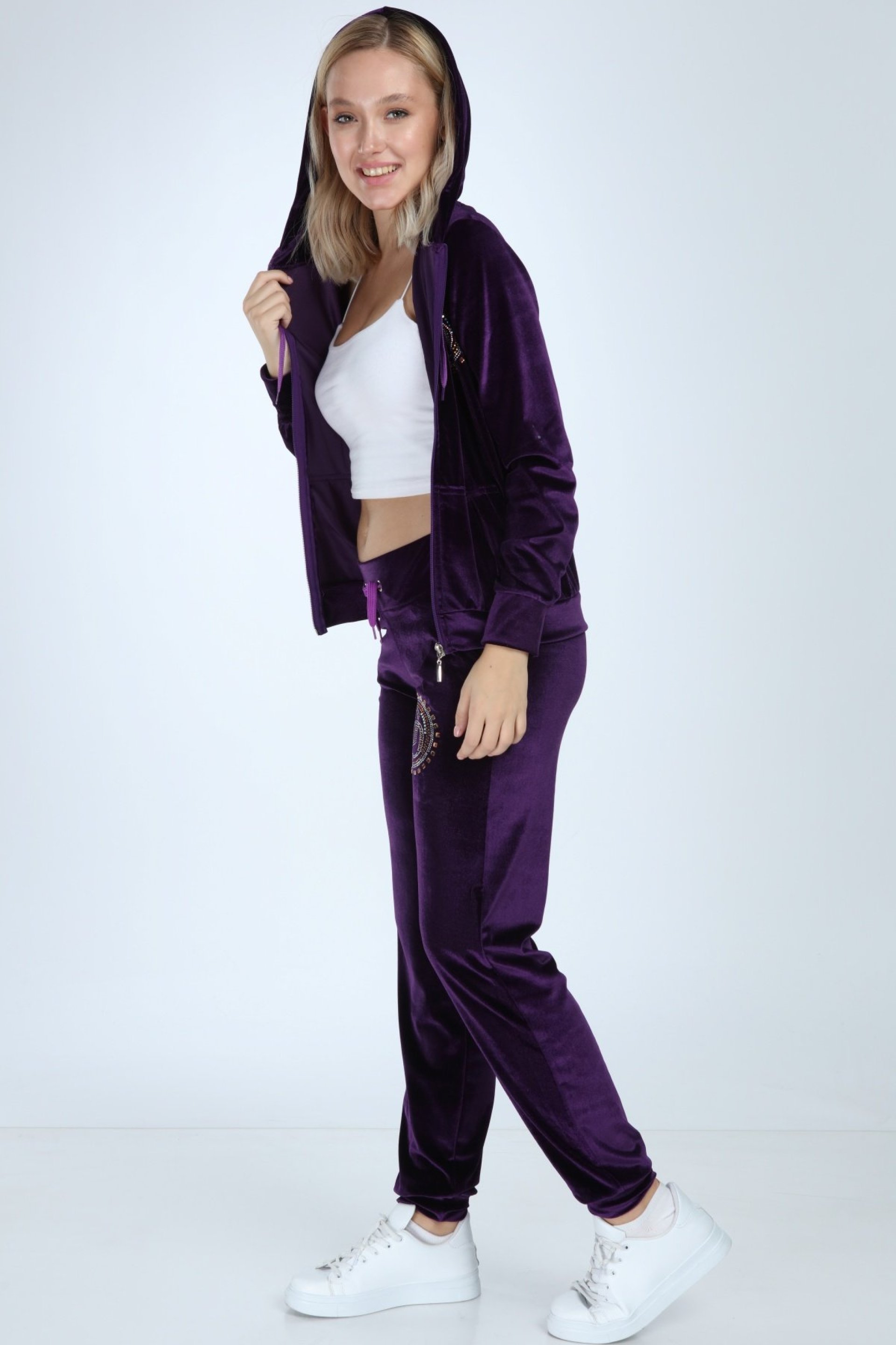 Paça Lastik Mor Bayan Kadife Takım