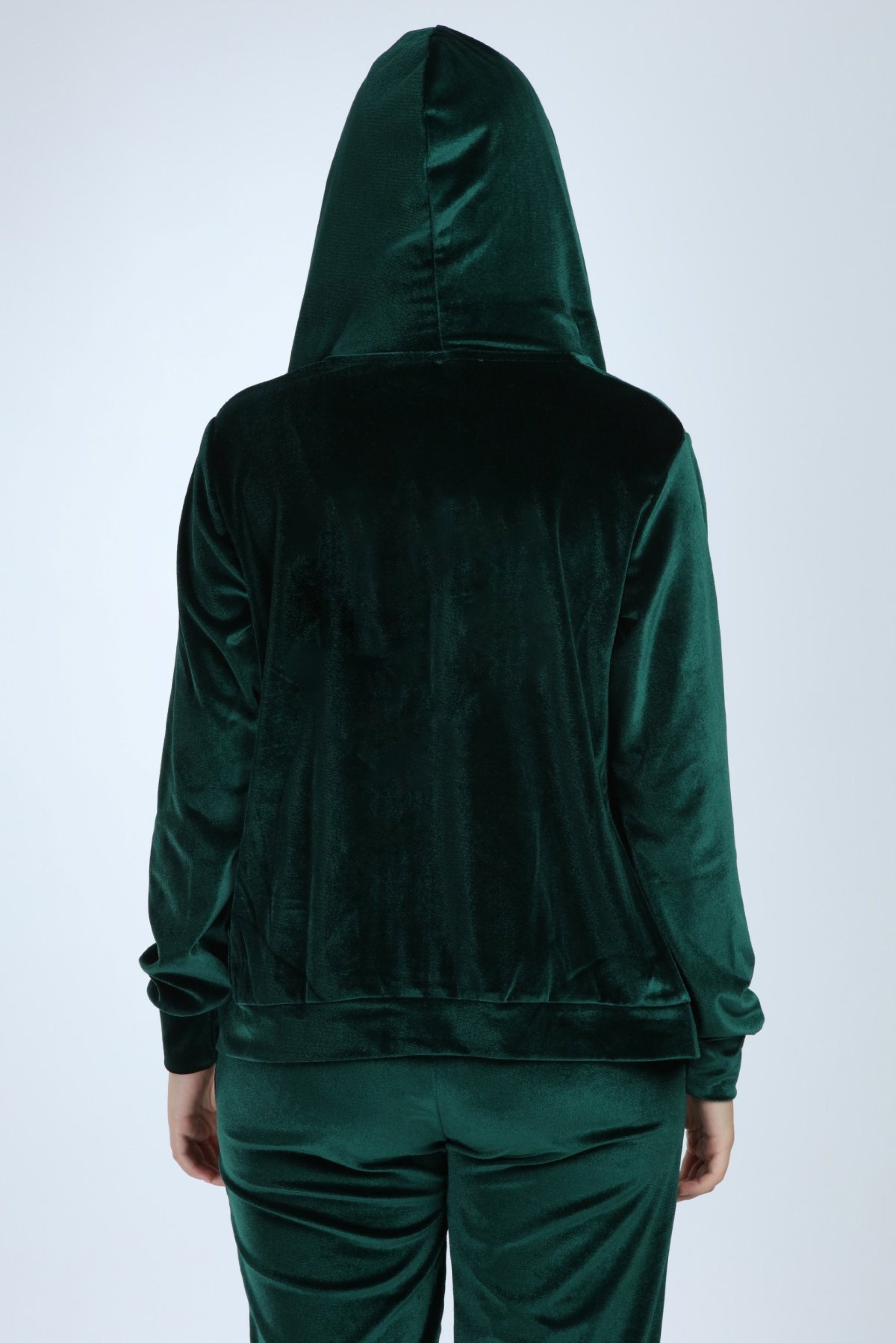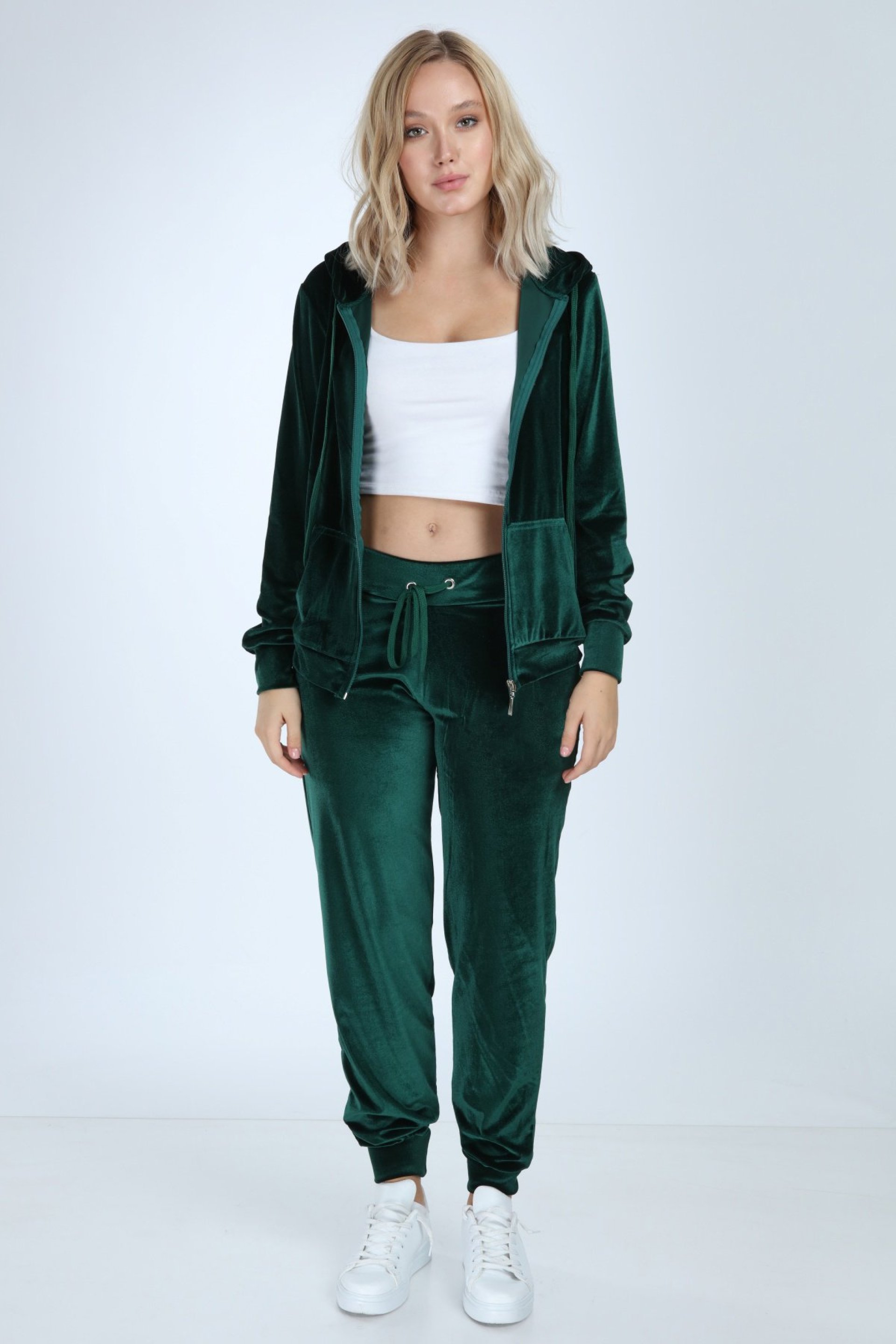 Taşsız Zümrüt Yeşil Paça Lastik Kadife Takım